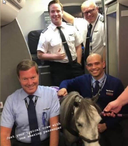 Flirty, who has a popular Instagram page and Twitter account, is described by his human handler as a “psych & mobility service horse”, and according to American Airlines is in fact a trained service animal. Hensley suffers from a variety of ailments including: depression, severe anxiety, panic disorder and PTSD.